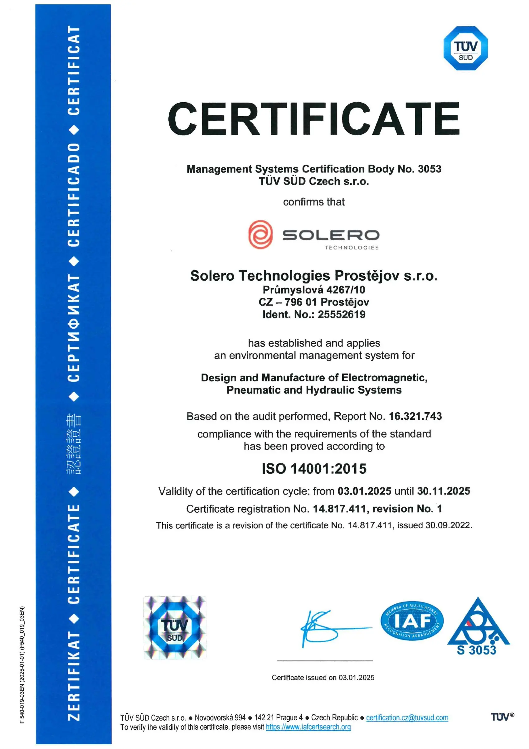 At Solero Prostějov, we’re committed to being a center of excellence for advanced solenoid technologies, supporting industries worldwide. Specializing in mobile hydraulics and active suspension systems for passenger vehicles, our team delivers precision-engineered solutions that adapt to changing market needs.